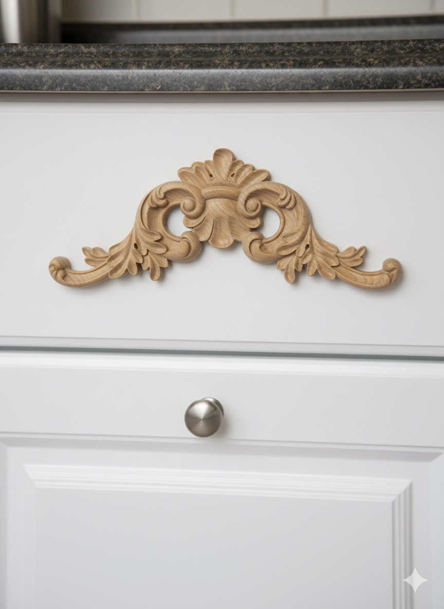 Ornament dekoracyjny wykonany z litego drewna jesionowego. Precyzyjnie frezowany, wykończony z dbałością o każdy detal, idealnie podkreśla charakter klasycznych oraz nowoczesnych aranżacji.