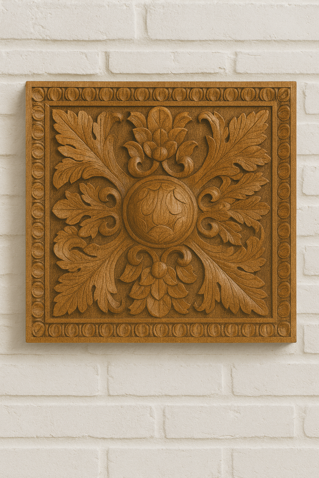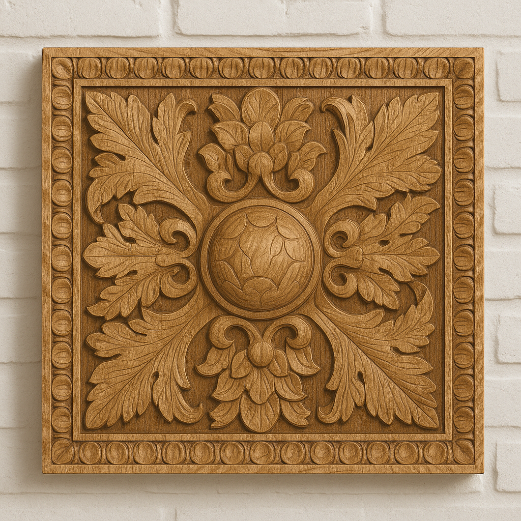 Ornament ozdobny wykonany z wysokiej jakości drewna. Dekoracja o wymiarach 30×30 cm i grubości 3 cm doskonale sprawdzi się jako elegancki element zdobiący ściany, meble, drzwi lub panele.